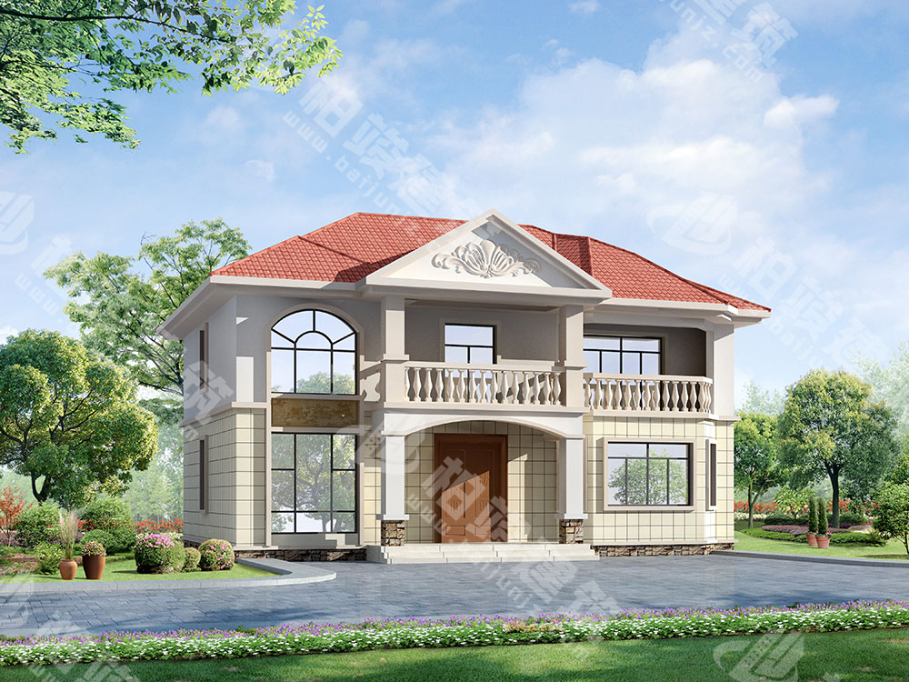 农村二层别墅设计图纸,清新简欧风外观,内部8室3厅4卫,实惠美观